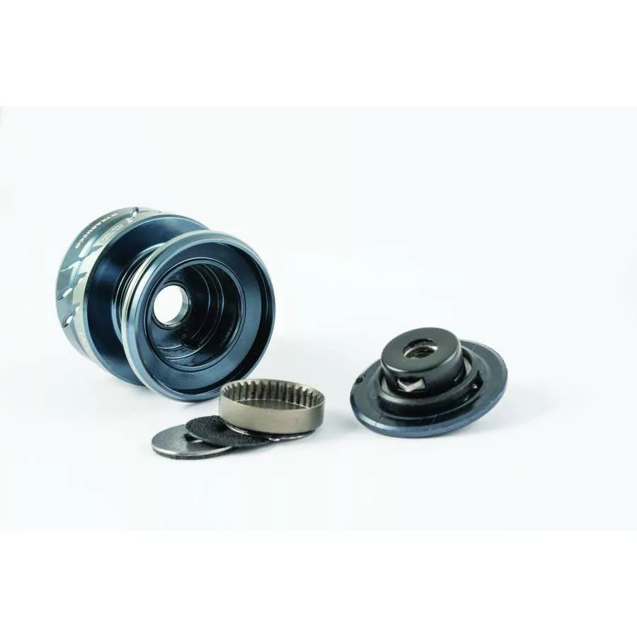 Die Struktur der Rolle ist hochmodern „full metal“, da sowohl der Körper als auch die Seitenabdeckung aus Aluminium gefertigt sind, um die bestmögliche Steifigkeit und Haltbarkeit zu gewährleisten. Dieses Modell verfügt über ein System, das das Umdrehen des Griffs ermöglicht, wodurch es perfekt für Rechts- und Linkshänder gleichermaßen geeignet ist.