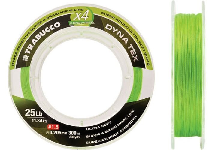 Trabucco Dyna-Tex X4 Power 150m 0,148mm Limettengelb Geflochtene Hauptschnur