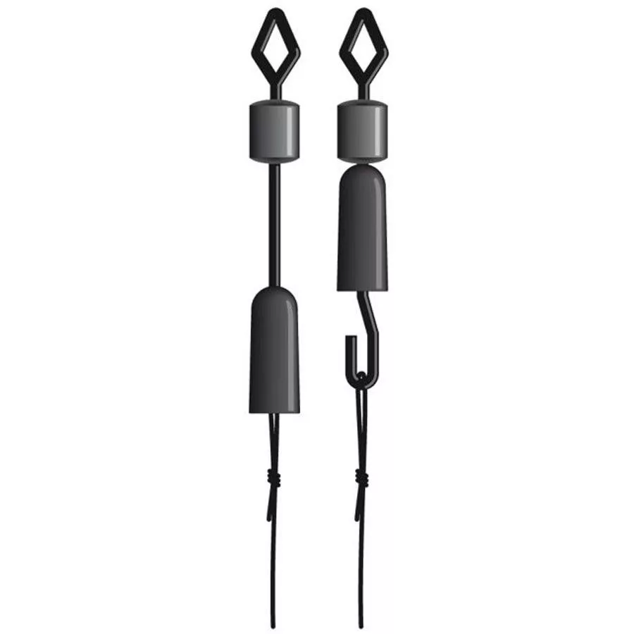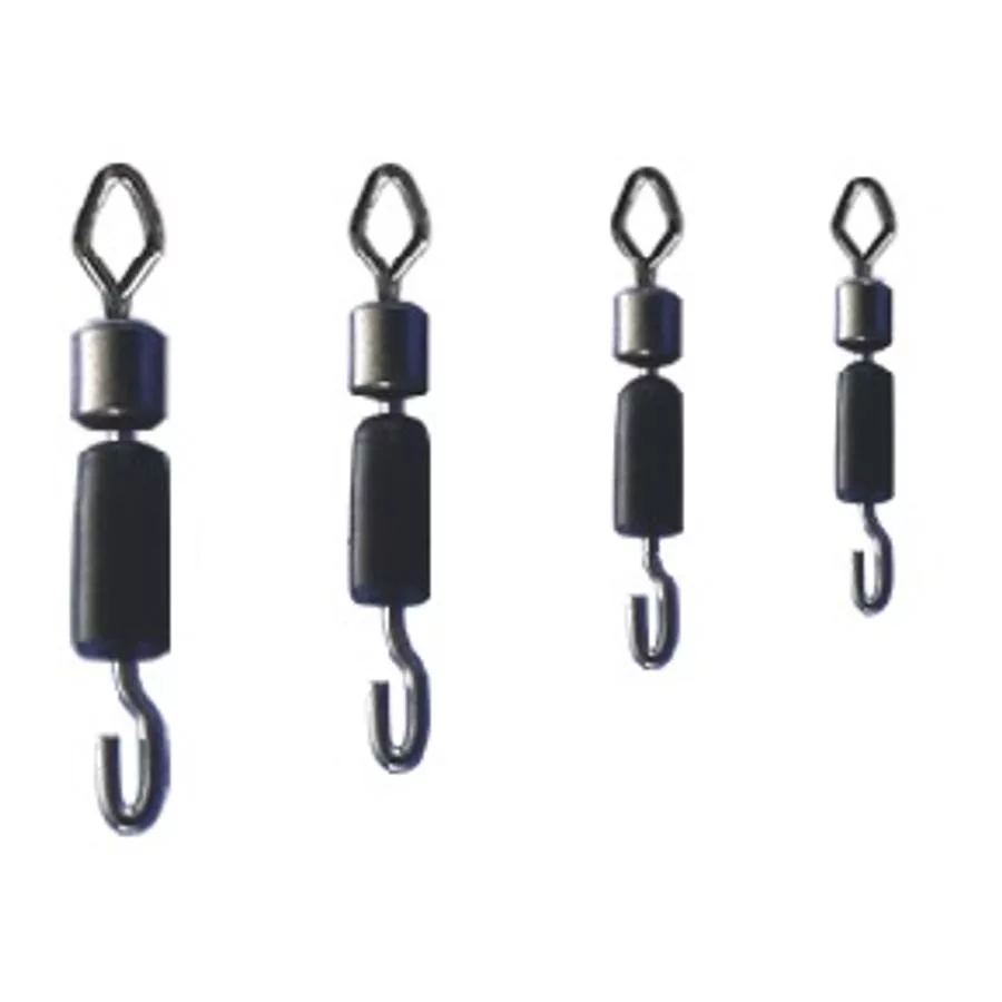 Wirbel mit zentralem Drehgelenk und schneller Vorfachbefestigung. Die Sicherheit des Vorfachs gewährleistet eine Befestigungshülse aus Gummi, die über den Haken des Vorfachs gezogen wird und so einen sicheren Verschluss bietet. Gleichzeitig ist ein Vorfachwechsel im Handumdrehen erledigt. Die Verwendung ist ideal für alle Angelarten, bei denen aufgrund wechselnder Bedingungen häufig Vorfächer gewechselt werden müssen.