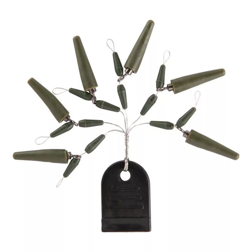 Das Herzstück des Sets ist ein Wirbel mit Schnellverschluss, der einen sekundenschnellen Vorfachwechsel ermöglicht – dies ist besonders vorteilhaft, wenn wechselnde Wassertiefen oder Fischarten am Angelplatz ein schnelles Variieren der Vorfächer erfordern. Der Abstandsgummi mit Konus spielt eine Schlüsselrolle dabei, dass das Vorfach sich nicht mit der Hauptschnur verheddert: Dieses kleine, aber geniale Teil steht im rechten Winkel zur Hauptschnur und gewährleistet so eine perfekte, verwicklungsfreie Funktion.