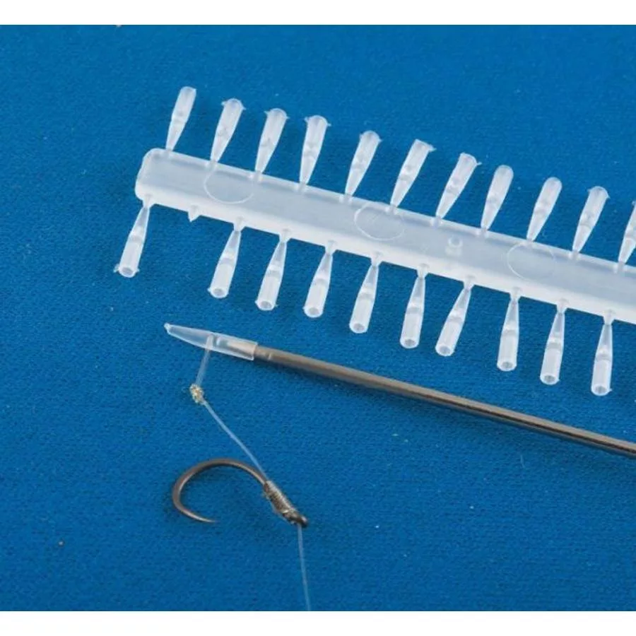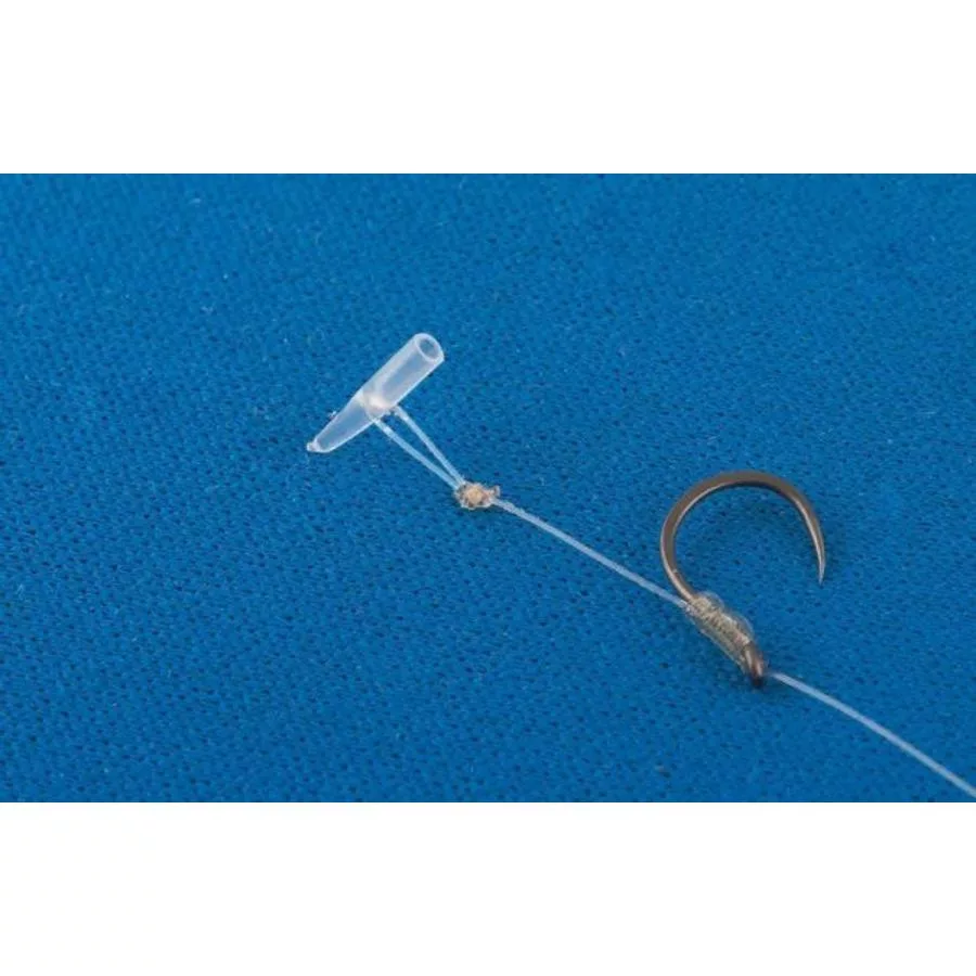 Die Anwendung ist einfach und logisch:. Hängen Sie die Schlaufe des Haarvorfachs in die Kerbe des Stoppers ein. Ziehen Sie den Stopper auf die mitgelieferte Nadel. Schieben Sie ihn durch den Köder und ziehen Sie dann die Nadel heraus. Drehen Sie den Stopper schließlich quer, um den Köder stabil zu befestigen.
