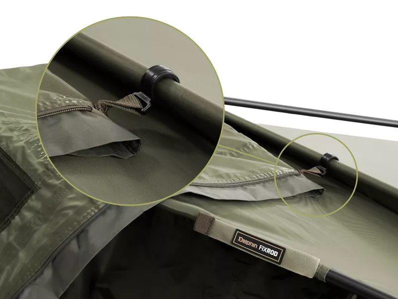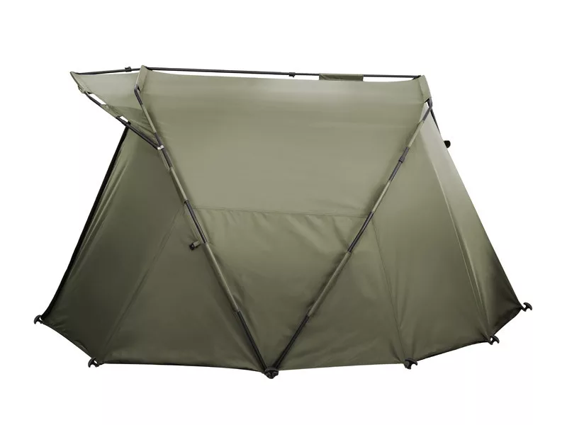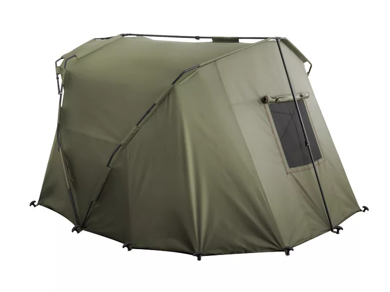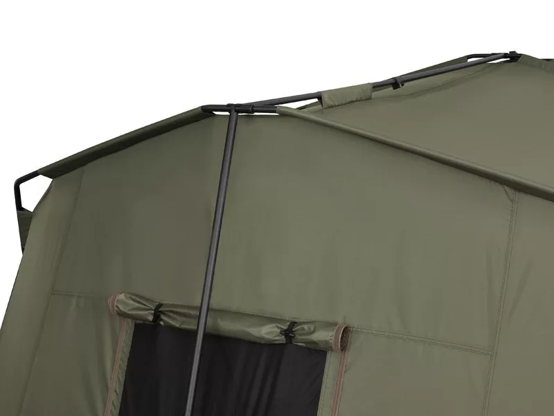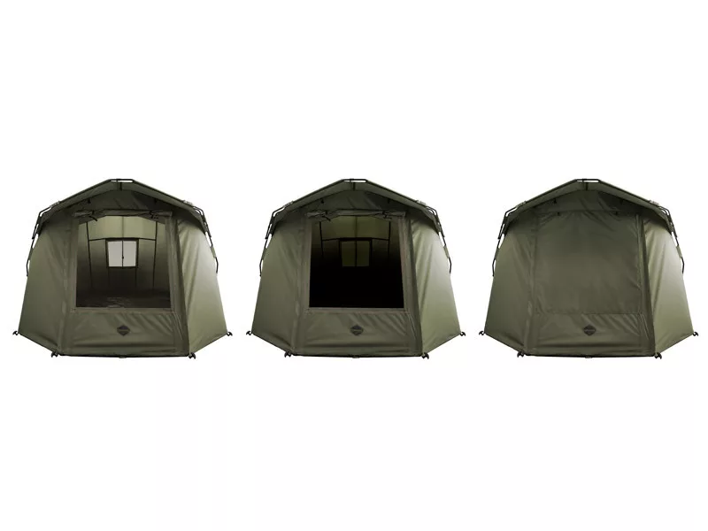 Bei der Entwicklung des Produkts war es die Absicht, ein unkonventionelles, aber sehr praktisches Zelt auf den Markt zu bringen. Jedes einzelne Fenster macht einen erheblichen Teil des Zeltpreises aus. Man muss das notwendige Material und die extrem aufwendige Näharbeit berücksichtigen. Wir haben uns jedoch entschieden, gegen den Strom zu schwimmen und den klassischen schmalen Eingang sowie die zwei von den meisten Zelten bekannten Fenster durch einen ultrabreiten Eingang zu ersetzen, der zahlreiche erhebliche Vorteile bietet. Er bietet eine perfekte Aussicht auf die Situation rund um das Zelt, als hättest du beide Fenster vorne. Darüber hinaus kann das Zelt viel schneller belüftet werden (es enthält auch ein hinteres Fenster) und bei Bedarf auch geschlossen werden. Das Einsetzen und Entfernen der Betten ist jetzt eine Stufe einfacher! Und was am wichtigsten ist, in diesem Fall haben wir den Preis der unnötigen Fenster in die Fläche des Zeltes investiert. Es bietet grandiosen Platz für zwei Personen. Die Zweirippen-Struktur des Zeltes besteht aus Aluminiumrohren, die perfekt ineinanderpassen und eine sehr solide Basis bilden. Zusammen mit den verwendeten hochwertigen Materialien stellt das PANORAMA Eazy ein zuverlässiges und extrem stabiles Zelt dar, das zweifellos auch starken Wind oder intensiven Niederschlag bewältigen kann. Dazu tragen auch die vollständig geklebten und nachträglich getesteten Nähte bei. Aufgrund seiner Größe kann das Zelt problemlos zwei Betten aufnehmen, wobei immer noch genügend Platz für einen komfortablen Aufenthalt bleibt. Dank seiner Transportmaße ist es auch ideal für Angler, die einsame Expeditionen bevorzugen, bei denen das PANORAMA den bequemsten Platz für ein Bett, einen Sessel, eine Tasche und alle notwendigen Dinge bietet. Ein weiterer Mehrwert ist das große vordere Vordach, das in dieser Preisklasse nicht selbstverständlich ist. Das Zelt enthält den Boden, den Sie mit Klettverschluss an den Wänden rundum befestigen können. Für einen bequemen Transport erhalten Sie auch eine praktische Tragetasche mit Griff.