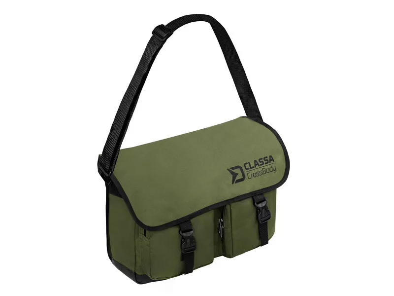 Eine universelle und praktische „Crossbody“-Tasche, die für jeden Angler, Jäger, aber auch für den täglichen Gebrauch, sei es zur Arbeit oder zur Schule, geeignet ist. Der Innenraum bietet ausreichend Platz für die Aufbewahrung und den Transport verschiedener Accessoires. Zusätzlich gibt es eine zweite schwarze Reißverschlusstasche, dank derer Sie die Dinge im Inneren der Tasche effizient trennen können. Die CLASSA CrossBody verfügt außerdem über zwei separate Vordertaschen, die mit hochwertigen Doppelreißverschlüssen ausgestattet sind. Die Tasche ist in Dunkelgrün gestaltet, kombiniert mit schwarzen Elementen wie Schnallen, Reißverschlüssen, Schultergurt oder Logo. Der gesamte untere Teil und die Seiten sind bis zu einer Höhe von 5 cm mit hochwertigem wasserdichtem Material ausgestattet. Zum Beispiel besteht auf nassem oder schmutzigem Untergrund keine Gefahr, dass das Produkt verschmutzt oder beschädigt wird. Dank ihrer Vielseitigkeit und Kompaktheit wird sie in verschiedenen Bereichen Liebhaber finden.