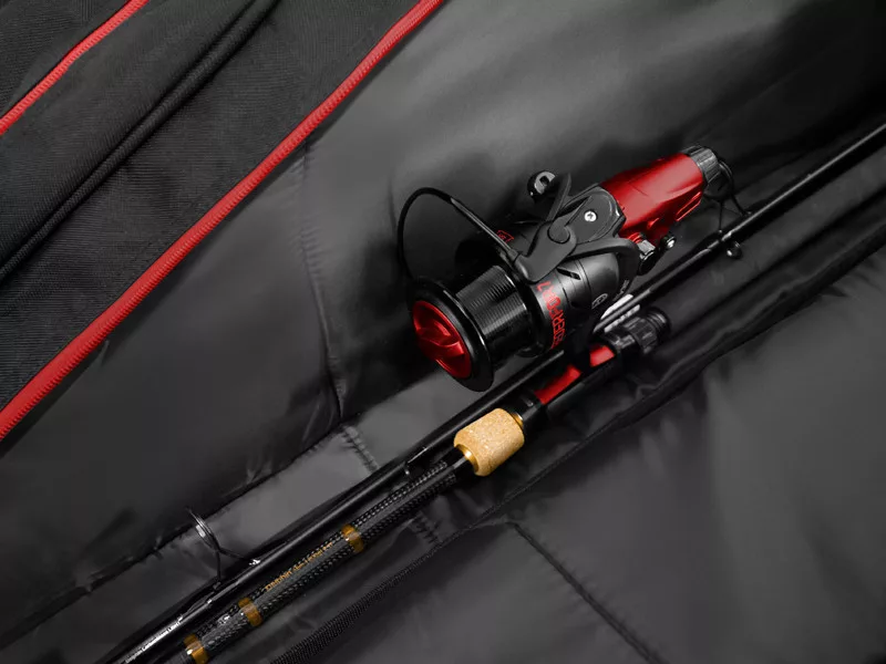 Farblich glänzt die ATOMA Feederserie in der typischen bordeauxrot-schwarzen Kombination. Die Seiten- und Unterwände sind sorgfältig gepolstert, was die Sicherheit beim Transport gewährleistet. Jedes Fach ist separat mit einem Reißverschluss versehen, sodass jede Ihrer Ruten getrennt und vor Beschädigungen geschützt ist. Jedes einzelne Fach ist separat gepolstert, und Sie können Ihre Ruten mit Klettverschluss befestigen. So finden Sie die befestigten Ruten nach dem Transport immer an ihrem Platz.