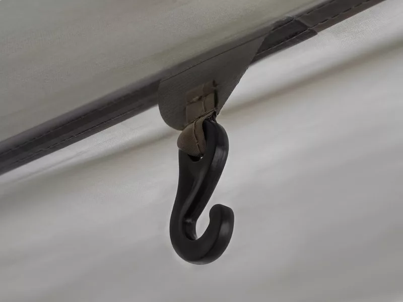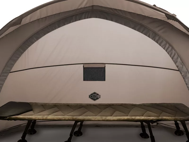 Unter Berücksichtigung der Bedürfnisse von Anglern, die keine Zeit für lange Angeltouren haben und das schnelle Übernachtungsangeln bevorzugen, bringt die Firma Delphin dieses außergewöhnliche und unglaublich praktische „Mini-Zelt“ auf den Markt. Sein Wesen liegt in der sogenannten „Pop-up“-Konstruktion, wodurch es extrem schnell und einfach auf- und abbaubar ist. Dies ist ein unbestreitbarer Vorteil beim kurzen, schnellen Angeln, bei dem man kein großes Zelt mitnehmen und aufbauen muss. Das sind noch nicht alle Vorteile dieses Produkts. Einer der Vorteile ist die Größe des Zeltes im zusammengeklappten Zustand. Dies ermöglicht es, es zusammengeklappt in das zusammengeklappte Angelbett zu legen, so dass es beim Transport keinen Platz einnimmt, und wenn es zu einem weiter entfernten Angelplatz gebracht werden muss, nehmen Sie es einfach zusammen mit dem Bett mit. Es wurde so konzipiert, dass ein Bett darin Platz findet, aber auch genügend Platz für Tasche, Tisch und andere Ausrüstung bleibt. Im Vergleich zu ähnlichen Konkurrenzmodellen liegt der Vorteil dieses Modells in seiner Tiefe, so dass Sie mehr Platz für sich und Ihre Ausrüstung haben. Trotzdem ist es sehr kompakt und ermöglicht die Platzierung auch an schwer zugänglichen, bewachsenen Stellen. Einfach überall dort, wo Sie Ihr Bett aufstellen können, aber nicht Ihr großes Zelt. Dadurch können Sie bequem an weniger beangelten Stellen fischen und sind so den anderen immer einen Schritt voraus. Trotz seiner kompakten Maße wird es Sie nach dem Abspannen überraschen, wie stabil es ist und problemlos auch stärkeren Wind standhält. An der Vorderseite befinden sich vier Reißverschlüsse, mit denen Sie den Eingang oder die Belüftung wählen können. Es verfügt über ein Moskitonetzfenster, so dass Sie immer sehen, was an Ihrem Angelplatz passiert. Auf dem Zeltdach befindet sich ein praktischer Haken, an dem Sie Ihre Lampe oder Jacke aufhängen können. In die Tasche auf der Rückseite können Sie Ihr Handy, Schlüssel, Bissanzeiger stecken, die so immer griffbereit sind.