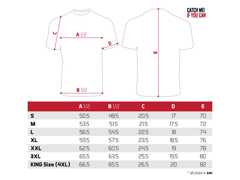 Das T-Shirt selbst ist von hoher Qualität, ebenso wie der verwendete Farbdruck. Wir bieten es in einer großen Auswahl an Größen an, von S bis KING SIZE (entspricht 4 + XL, was in den meisten Ländern als XXXXXL bezeichnet wird). Das King Size Modell kleidet spielerisch selbst die größten Angler mit einem Gewicht von 135 kg + ein.