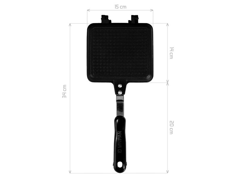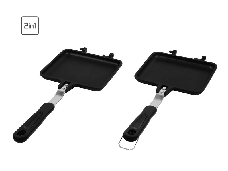 Kompakte doppelseitige Pfanne, die es ermöglicht, köstliche Speisen überall in der Natur zuzubereiten. Aufgrund ihrer Größe ist sie ideal für die Zubereitung schneller Frühstücksgerichte wie Toast oder Eier.