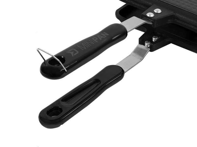 Die Handhabung des MiniPAN wird durch hitzebeständige Griffe erleichtert, die mit einem einfachen System befestigt werden können, damit sie sich beim Kochen oder Wenden nicht ungewollt öffnen.