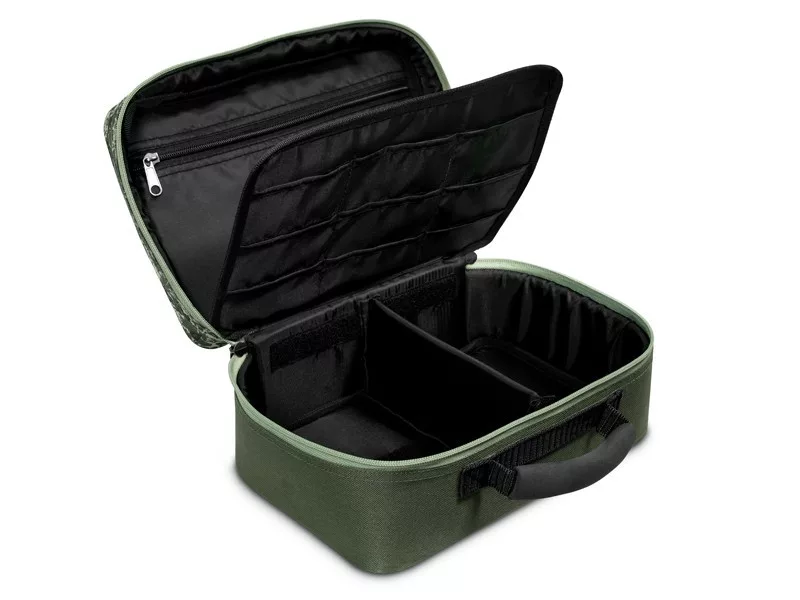 Die Delphin TACKLE SPACE ist eine praktische, gepolsterte Tasche im C2G Tarnmuster, die hauptsächlich zur Aufbewahrung von Zubehör konzipiert wurde. Das Hauptstaufach wird durch eine gepolsterte Klettverschluss-Trennwand unterteilt, die je nach Ihren Bedürfnissen variierbar ist.