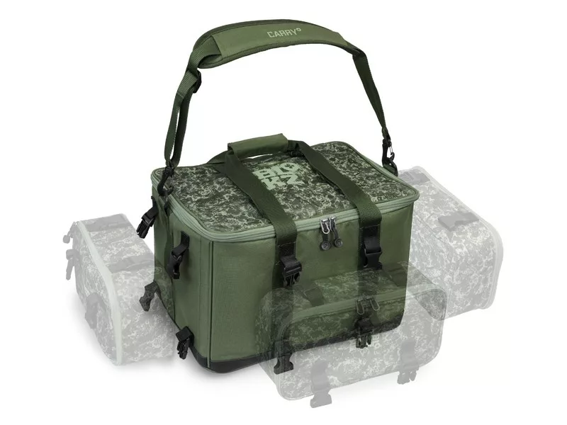 Wer mit 45 Litern Inhalt nicht auskommt, hat die Möglichkeit, zusätzliche BLOKZ-Taschen (Beutel) separat zu erwerben, die mit Clips an der Oberseite der Tasche befestigt werden können. Die Gurte können ebenso gut zum Befestigen von Ausrüstung oder Kleidungsstücken verwendet werden. So lässt sich wirklich luxuriöser Stauraum für den Transport der Angelausrüstung schaffen.