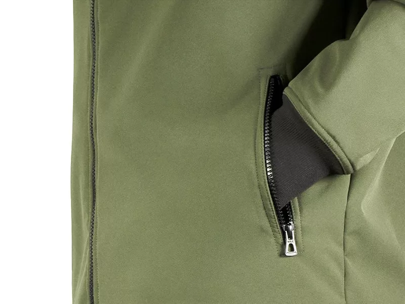 Für noch besseren Schutz und Komfort verfügt die Jacke über eine extragroße Kapuze mit Kordelzug und einen hohen Kragen. Die äußere Softshell-Schicht sorgt für eine sehr gute Wärmeisolierung, und die Innenschicht besteht aus weichem und warmem Fleece-Material.