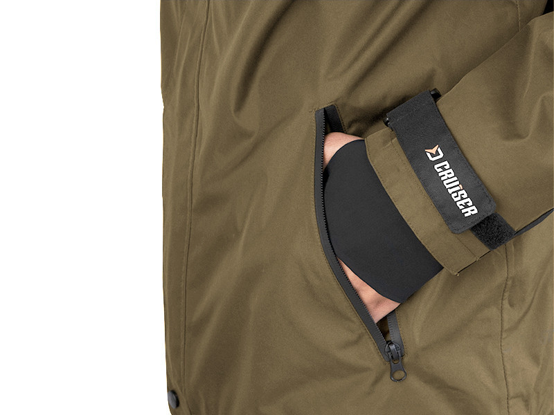 Hochwertige Jacke für kaltes Wetter. Ideal für Frühling und Herbst, für den Aufenthalt am Wasser oder in der Natur. Das Innenmaterial der Jacke ist mit einem Netzgewebe versehen, sodass die Haut nicht mit dem Außenmaterial in Berührung kommt und somit die Schweißbildung reduziert wird. Weich und angenehm im Griff, der Kragen ist mit Wollfutter ausgestattet, um Scheuern am Hals zu vermeiden. Sie verfügt über praktische Reißverschluss-Innen- und Außentaschen, die mit wasserdichten Reißverschlüssen versehen sind. Der Brustreißverschluss ist mit einer Patte versehen, damit keine Kälte eindringt. Der Saum der Jacke ist mit elastischen Kordeln verstellbar. Die Kapuze ist abnehmbar und verstellbar. Die Ärmel der Jacke sind mit Riemen verstellbar und haben eine integrierte Handflächenverlängerung mit Daumenloch.