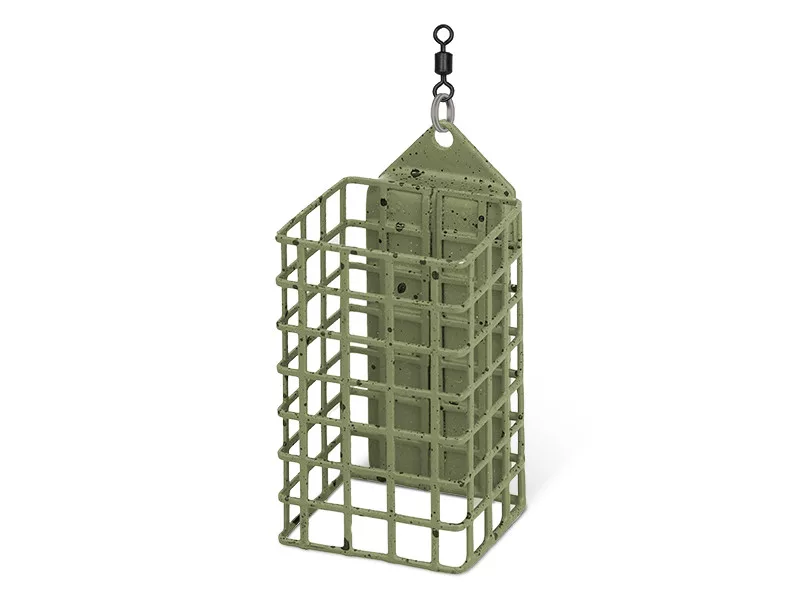 Mit der Innovation des ECO Splash wurde das Bleigewicht durch Stahl ersetzt, wodurch Umweltrisiken ausgeschlossen wurden. Darüber hinaus ist es umweltfreundlich und beim Auswerfen und Einholen genauso effektiv wie der traditionelle Futterkorb. Der Korb ist aus starkem Draht gefertigt, der seine Form beim Befüllen behält. Der Korb und das darauf befindliche Gewicht haben ein einzigartiges Tarnmuster, das perfekt in die Unterwasserumgebung passt.