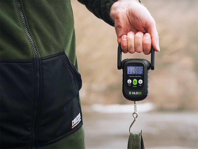 Eine Digitalwaage zur genauen Messung des Gewichts von Fischen zwischen 50 g und 50 kg.