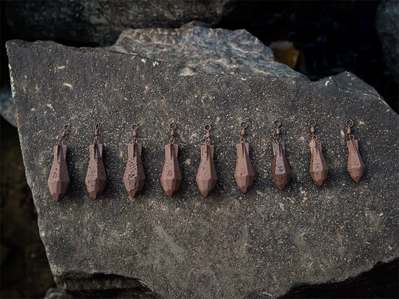 Die aerodynamische Form des Tropfens wurde so konzipiert, dass er beim Wurf den geringstmöglichen Widerstand erzeugt. Die runden Oberflächen wurden durch schärfere ersetzt, um mehr Material in die äußeren Kanten zu legen und eine kleinere Form zu schaffen. Die Seitenflügel stabilisieren das Gewicht beim Wurf, wodurch unsere Würfe verlängert, präziser und konstanter werden. Die Oberfläche des Gewichts ist braun beschichtet und mit schwarzen Flecken verziert, um eine bessere Tarnung am Gewässergrund zu gewährleisten.