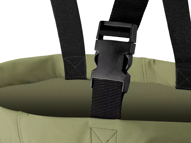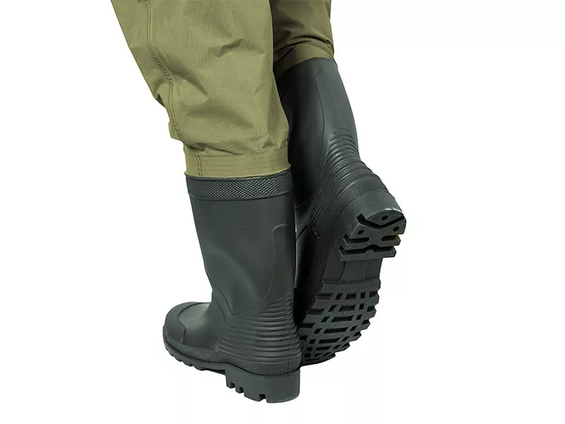 Hervorragende Eigenschaften und gut durchdachte Details zeichnen sie aus, wie zum Beispiel die exzellenten Nähte und Materialübergänge. Das geringe Gewicht, die Flexibilität und die absolute Wasserdichtigkeit des ausgewählten Materials machen sie einzigartig. Dank dieser Parameter fühlen Sie sich auch bei erhöhter Aktivität in der CLASSA Wathose wohl. Neben den herkömmlichen verstellbaren Schultergurten verfügt dieses Modell auch über einen abnehmbaren Gürtel, der eine noch bessere Anpassung an die Körperform des Anglers ermöglicht. Ein weiterer großer Vorteil des festgezogenen Gürtels ist, dass er bei einem versehentlichen Sturz ins Wasser verhindert, dass Wasser schnell in die Wathose eindringt. Die Gummistiefel mit strapazierfähiger und stabiler Sohle ermöglichen bequemes Waten unter verschiedenen Bedingungen. Die Sohle der Stiefel ist aus dickem und strapazierfähigem Gummi gefertigt, das hervorragenden Halt auf allen Oberflächen bietet. Das rutschfeste Design erhöht die Sicherheit, besonders unter nassen oder schlammigen Bedingungen. Die Stiefel verfügen zudem über eine Fersenverstärkung zum leichteren Ausziehen.