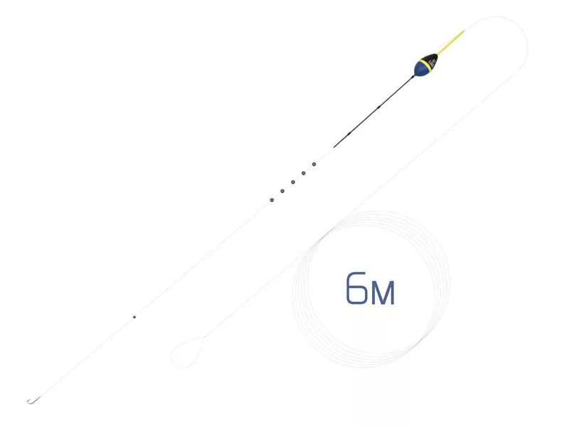 Eine vorgebundene, 6 m lange fertige Montage, konzipiert für das Angeln mit einer Stipprute, die einen tropfenförmigen Schwimmer mit einem Gewicht von 0,5-3 g, mit Schrotbleien beschwert, und einen Haken enthält.