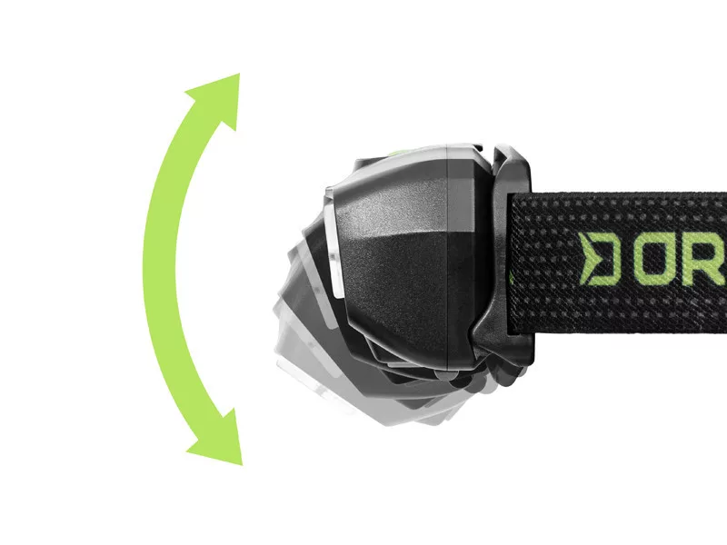 Für maximale Flexibilität ist die ORBIX Stirnlampe neigbar, sodass sie im gewünschten Winkel eingestellt werden kann. Das flexible, verstellbare Stirnband sorgt für angenehmen Tragekomfort.