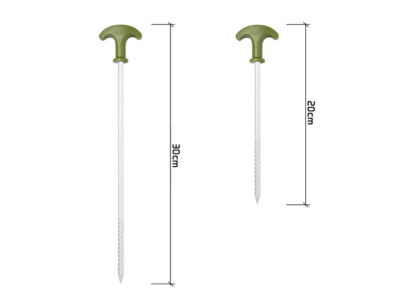 » Aus strapazierfähigem Material» Mit vierseitiger Bohrspitzen-Konstruktion» Die Tragetasche erleichtert die Aufbewahrung und den Transport der Heringe» Das grüne Kunststoffoberteil verschleißt nicht und lockert sich nicht» Die Heringe sind langlebig