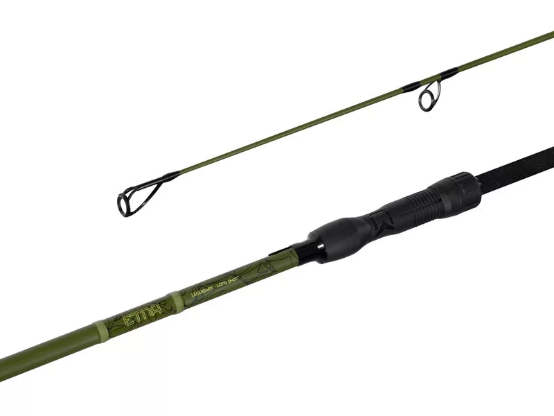 Die CAMO LongSHOT+ Variante unterscheidet sich in ihrem einzigartigen Design von der klassischen ETNA-Serie; der Rutenkörper ist in mattem Dunkelgrün gehalten, ergänzt durch eine Camouflage-Grafik oberhalb des Rollenhalters. Dies ermöglicht es der Rute, sich mühelos in ihre natürliche Umgebung einzufügen und sich gleichzeitig von anderen Ruten auf dem Markt abzuheben.