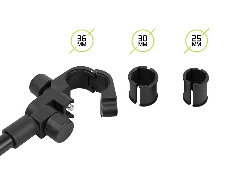 » Mit 25, 30 und 36 mm Adaptern kompatibel mit fast jeder Angelausrüstung und jedem Stuhl