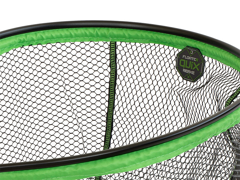 Das FloateR Quix-Netz ist gummibeschichtet, was nicht nur die Haltbarkeit erhöht, sondern auch verhindert, dass das Netz Wasser aufsaugt, sodass es schnell trocknet. Dies ist besonders vorteilhaft, wenn Sie unnötige Feuchtigkeit und unangenehme Gerüche vermeiden möchten. Der untere Teil des Rahmens ist vollständig mit grünem Stoff überzogen, was die Haltbarkeit weiter erhöht und stilvoll zur grün-schwarzen Farbwelt der Reaxe-Serie passt.
