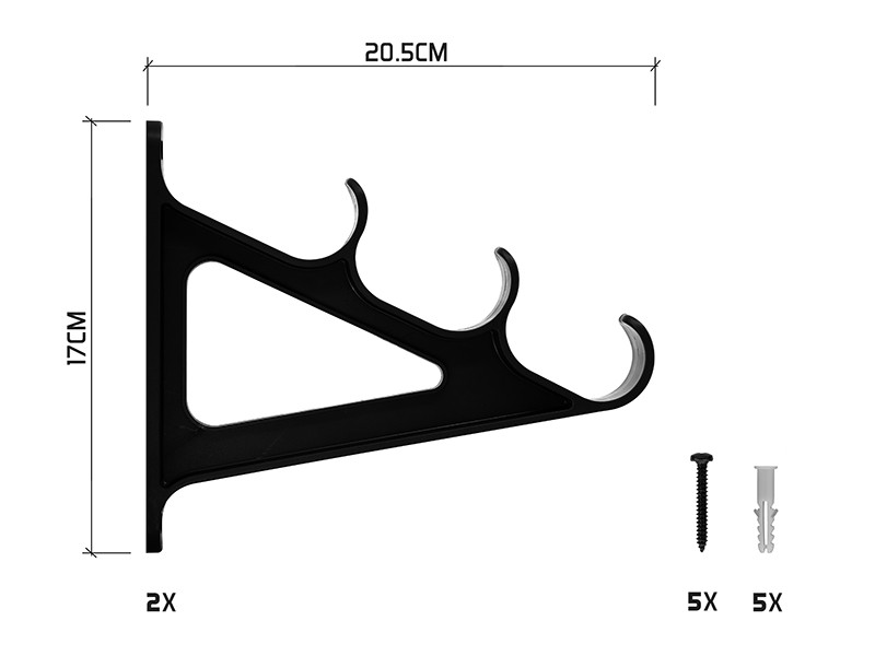 Jeder Halter verfügt über zwei Öffnungen, mit denen er an einer Wand oder einer Lochplatte befestigt werden kann. Das Produkt enthält 5 Dübel und Schrauben, sodass Sie nur eine Bohrmaschine und einen Schraubendreher für die Installation benötigen.