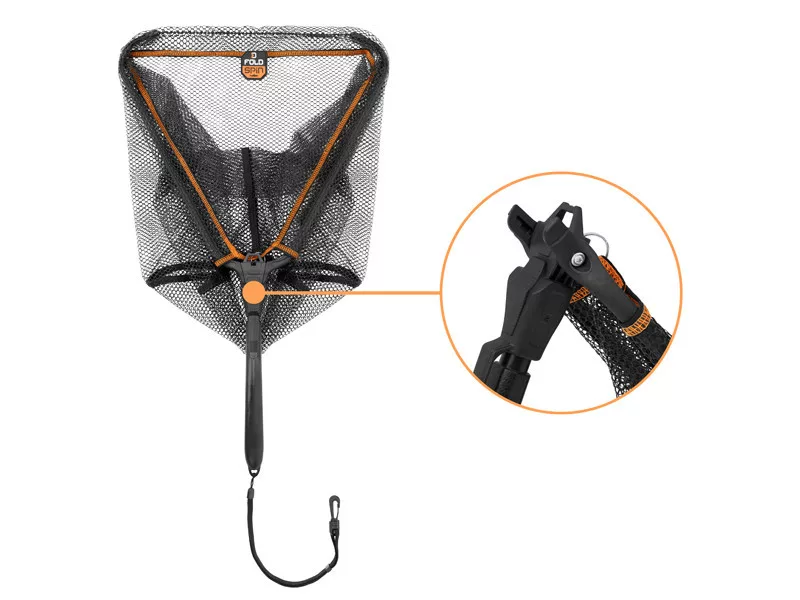 Dies ist ein praktischer Kescher, der besonders bei Spinn- und Fliegenfischern beliebt ist, die in schnell fließenden Gewässern angeln. Dank seiner kompakten Größe und dem Karabiner am Griff kann er am Gürtel der Wathose befestigt werden und ist so beim Waten sofort griffbereit. Der einfache Mechanismus des Keschers ermöglicht ein schnelles Öffnen und Zusammenklappen mit einer Hand, was besonders nützlich ist, wenn der Fisch im Wasser stehend behandelt werden muss. Das weiche, gummierte Netz ist fischschonend und nimmt keine unangenehmen Gerüche auf.
