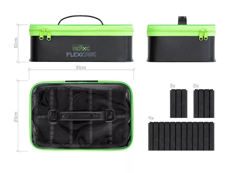 Die Delphin REAXE FlexiCASE ist eine clever konzipierte Organizer-Tasche aus EVA-Material, die eine geordnete Aufbewahrung verschiedener Feeder-Ausrüstungen – Futterkörbe, Haken, Köder – ermöglicht.