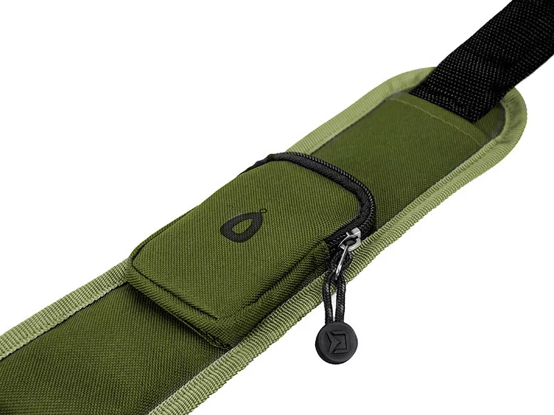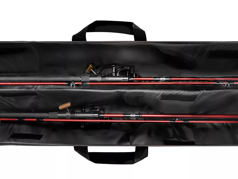 Der Rollenbereich ist verbreitert, so dass auch größere Karpfenrollen bequem Platz finden, einschließlich des 50 mm Starterrings. An der Seite der Rutentasche befindet sich eine lange Reißverschlusstasche, die zum Transport von Keschern oder Banksticks geeignet ist. Auf dieser Tasche ist eine weitere Tasche mit Clip aufgenäht, die im Vergleich zum Vorgängermodell größere Verstaumöglichkeiten bietet. Am gepolsterten Teil des Schultergurts befindet sich eine kleine Tasche, die zur Aufbewahrung von Blei oder anderem kleinen Angelzubehör dient. Der hochwertige Reißverschluss, der bequeme Handgriff und der gepolsterte Schultergurt runden diese praktische, strapazierfähige Rutentasche ab.