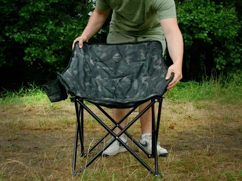 An der Seite des Stuhls befindet sich eine praktische Tasche, in der Sie Ihr Lieblingsgetränk, Ihr Telefon oder andere Kleinigkeiten verstauen können. Für den bequemen Transport ist der FOLDIX auch mit einem Griff und einem Klettverschluss ausgestattet, so dass er während des Transports leicht gesichert werden kann.