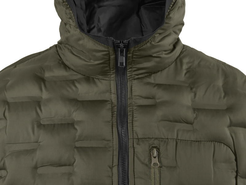 Die Jacke verfügt über drei Außentaschen mit Reißverschluss (zwei Seitentaschen und eine Brusttasche) sowie eine Innentasche, die praktischen Stauraum für kleinere Gegenstände, Dokumente oder Wertsachen bieten. Die gefütterte Kapuze bietet zusätzlichen Schutz bei windigem, kaltem Wetter, während die elastischen Ärmelbündchen und der Saum helfen, die Körperwärme drinnen zu halten. Der ergonomische Schnitt der Jacke und das 3D-Steppmuster verleihen ein modernes Aussehen, das durch die dezenten Ixtera Logos noch verstärkt wird.