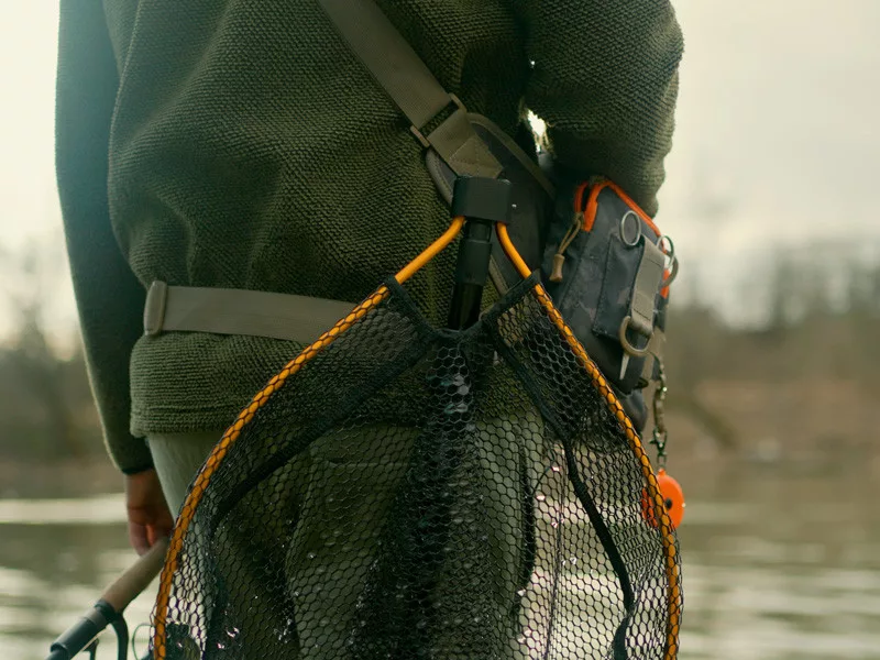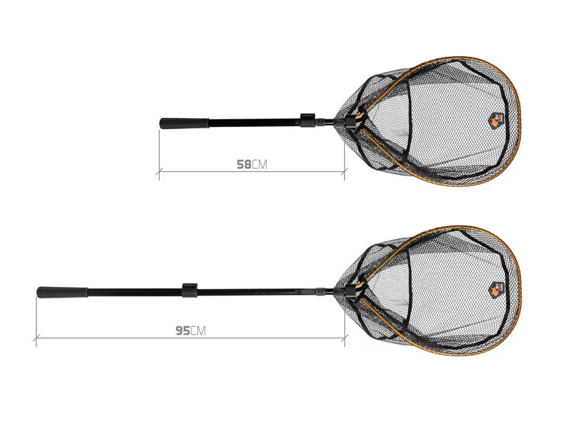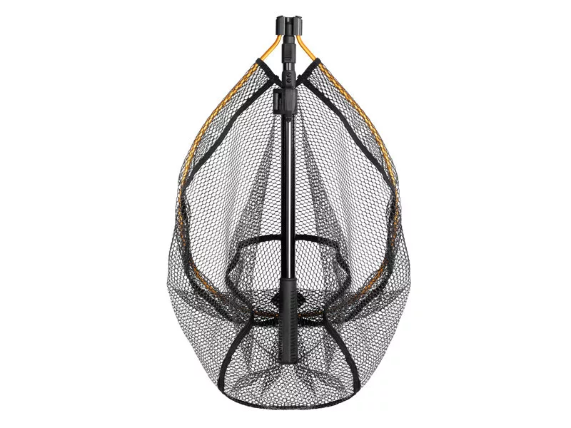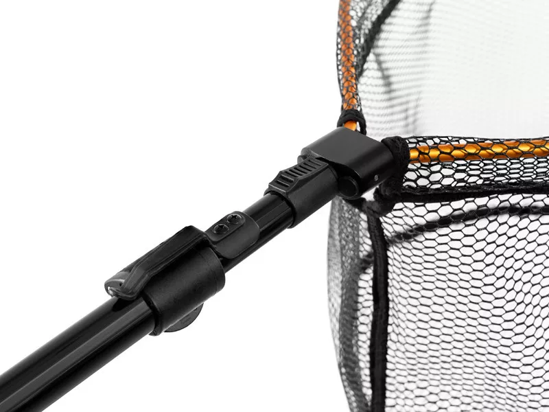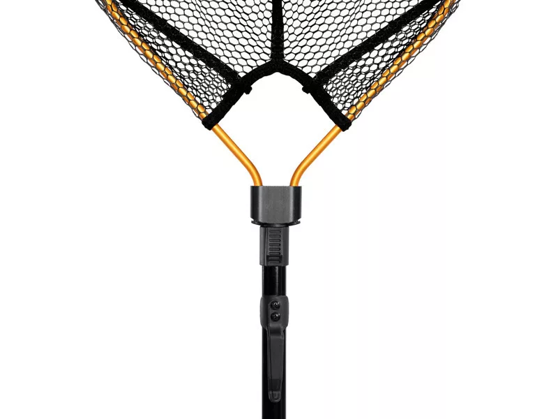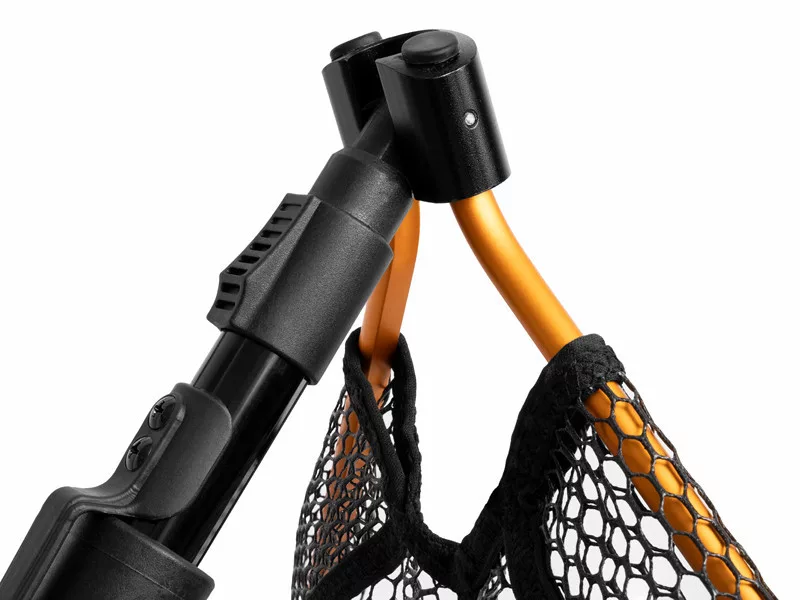 Der Kescherkopf ist aus strapazierfähigem Material gefertigt, das auch bei anspruchsvollem Gelände mechanischen Beschädigungen widersteht. Mit der zentralen Arretierung lässt sich der Kopf schnell und einfach zusammenklappen oder öffnen, was besonders nützlich ist, wenn eine schnelle Reaktion erforderlich ist. Der Rahmen ist mit einem gummierten Netz ausgestattet, das fischschonend ist, deren Haut nicht verletzt und keine Flüssigkeiten aufsaugt. Dies reduziert die Entstehung unangenehmer Gerüche, was besonders vorteilhaft beim Transport, zum Beispiel im Auto, ist.