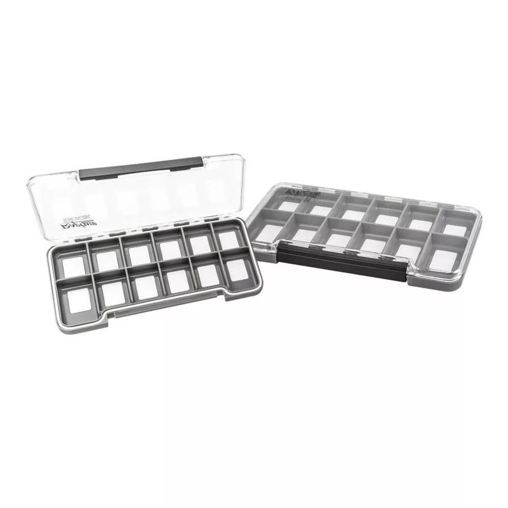 Das Design der Box umfasst zwölf gut voneinander getrennte Fächer, die eine Gruppierung der Köder nach Typ, Farbe oder Größe ermöglichen, sodass Sie beim Angeln schnell und effektiv arbeiten können. Der transparente Deckel ermöglicht es Ihnen, den Inhalt auf einen Blick zu überblicken, ohne die Box öffnen zu müssen – dies ist besonders nützlich, wenn Zeit und Konzentration für die Auswahl des richtigen Köders erforderlich sind. Durch die flache, leicht zu tragende Form der Box passt sie problemlos in eine Angeltasche, Jackentasche oder ein Boxensystem, sodass sie immer griffbereit ist, wenn Sie sie brauchen.