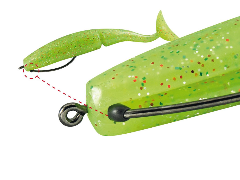 Der Haken selbst ist aus speziellem, kohlenstoffreichem Stahl gefertigt, der hohe Qualität, Stärke und Haltbarkeit garantiert. Die chemisch geschärfte Hakenspitze sorgt für einen sicheren Halt auch im Maul der knochigsten Raubfische.