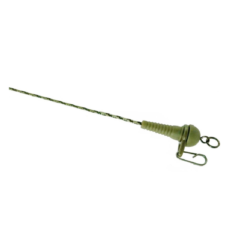 Eines der Schlüsselelemente des Vorfachs ist der speziell geformte Gummikopf, der den Sicherheitsclip auch unter großer Belastung sicher und stabil hält. Dieses Design ermöglicht nicht nur die sichere Befestigung des Vorfachs, sondern auch einen schnellen und einfachen Wechsel, sogar direkt am Wasser. Die Länge von 90 cm ermöglicht eine natürliche Bewegung des Köders, während die bleihaltige Schnur dafür sorgt, dass das Vorfach stabil auf dem Grund liegt.