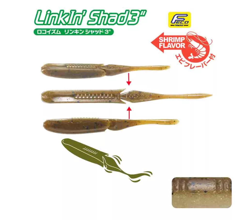 Der Körper des Linkin Shad ist so gestaltet, dass er auf die kleinste Zuckung mit einer lebensechten, wackelnden Bewegung reagiert und unwiderstehliche Vibrationen aussendet, die Fische aus der Ferne anlocken.
