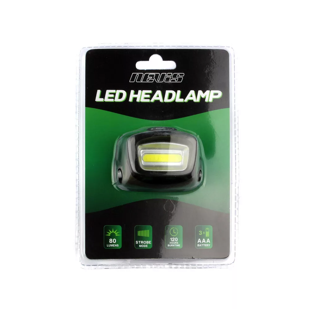 Die NEVIS Stirnlampe ist eine Stirnlampe mit einer hochwertigen LED-Leiste, deren oberer Schalter zwei Helligkeitsstufen sowie das Blinklicht einstellen lässt. Ihre Helligkeit beträgt 80 Lumen.