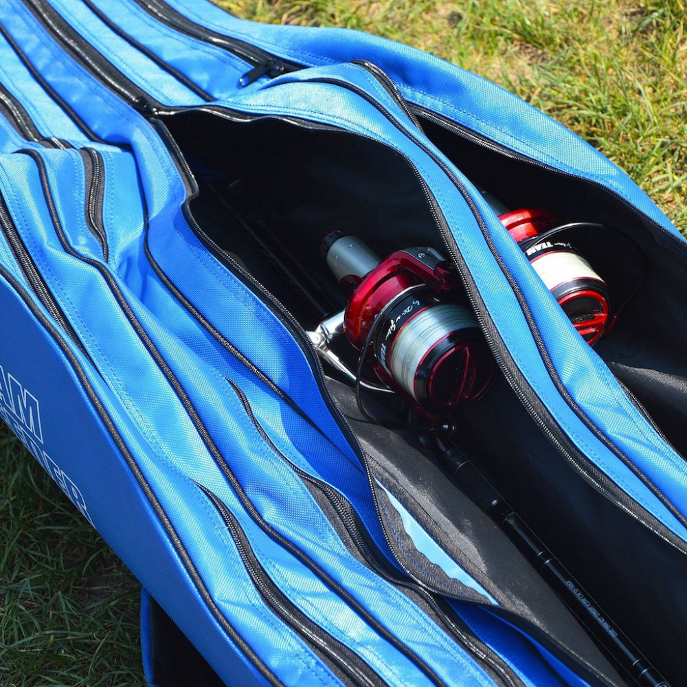 Der gepolsterte Schultergurt, dessen Länge nach Belieben eingestellt werden kann, ermöglicht einen äußerst bequemen Transport. Das Material des Rutenfutterals ist wasserdicht. Es wird in einer Größe von 165 cm vertrieben, sodass auch sehr lange, bis zu 4,8 Meter lange Match- und Feederrouten darin platziert und transportiert werden können.