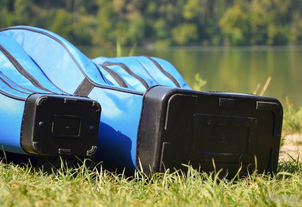 Für den sicheren Transport von Ruten und Rollen befindet sich im Futteral eine gepolsterte Fachunterteilung. Eine Besonderheit ist der harte Kunststoffboden, dank dessen das Rutenfutteral nicht auf das Gras gelegt werden muss, sondern auf seinen eigenen Füßen stehen kann.