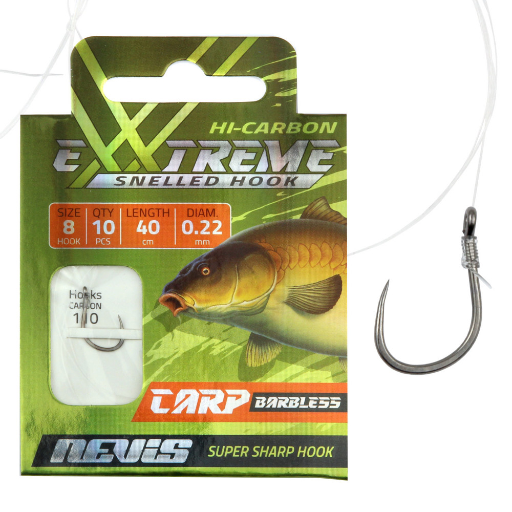 Nevis 12 Widerhakenlos, mit Öhr 40cm 0,20mm Monofile Vorgebundener Karpfenhaken 10 Stk.