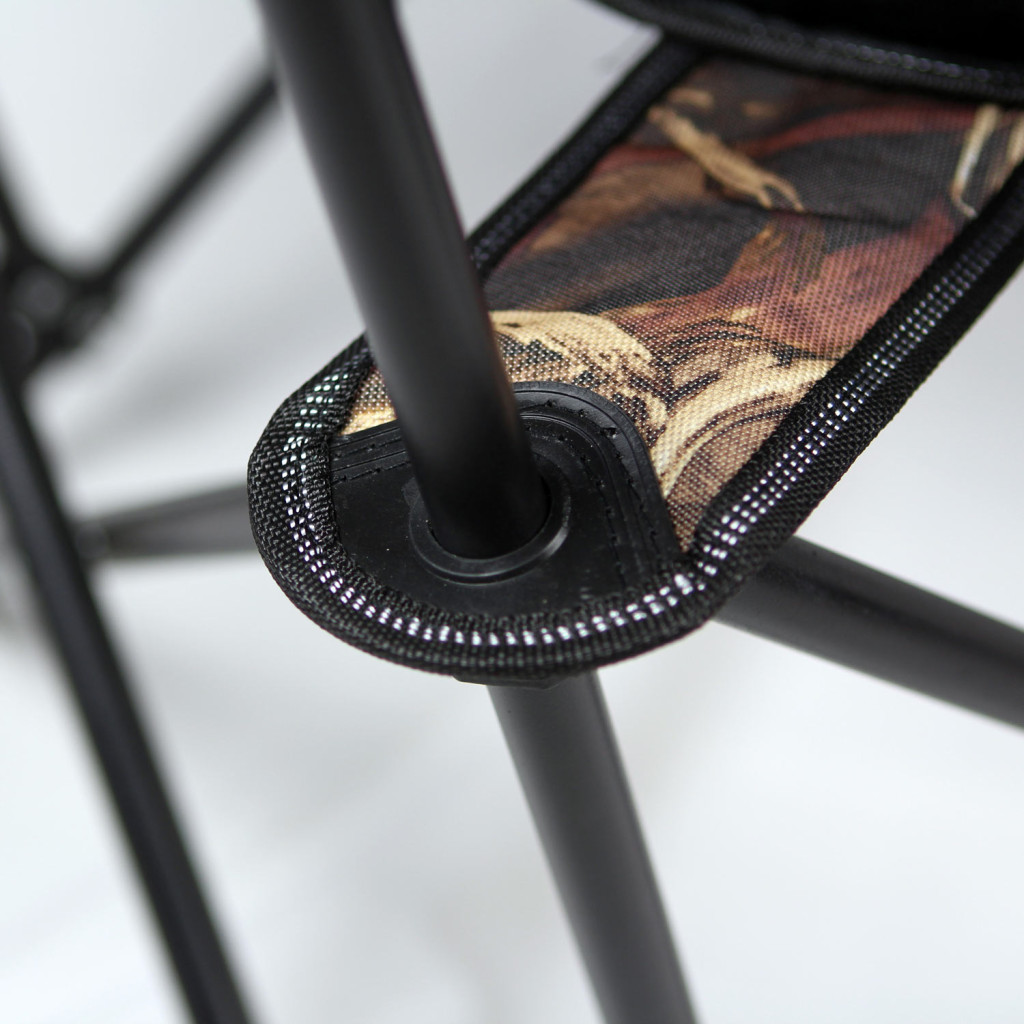 Der Bezug besteht aus 1600D Oxford Nylon, das extrem robust, abriebfest und langlebig ist. Das Tarpaulin-Gewebe ist nicht nur strapazierfähig, sondern verleiht dem Stuhl auch ein diskretes Aussehen, das sich perfekt in die natürliche Umgebung einfügt. Das Gewicht des Stuhls beträgt 2,1 kg, was ihm Stabilität verleiht, ihn aber dennoch leicht transportierbar macht.