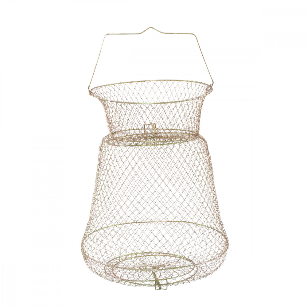Runder Drahtkescher mit 25 cm Durchmesser, der oben und unten geöffnet werden kann.