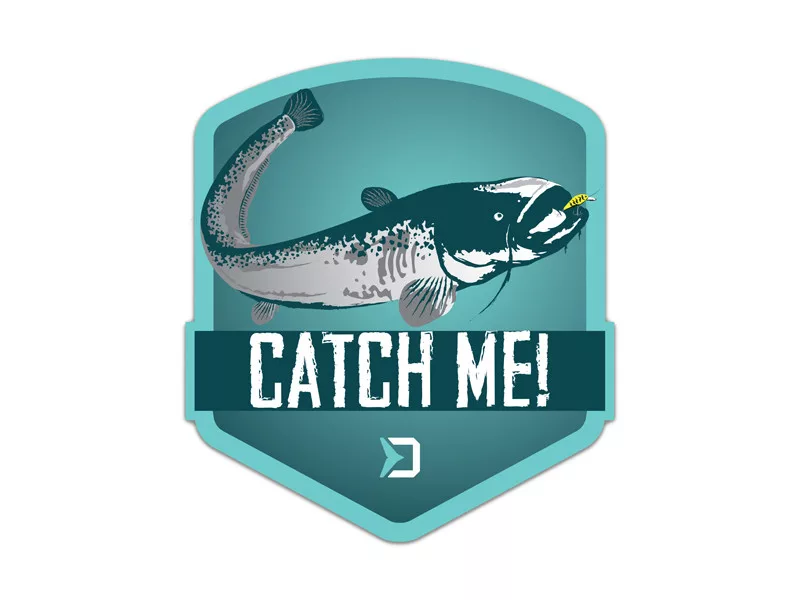 Hochwertiger selbstklebender Aufkleber aus der CATCH ME! Serie, der hauptsächlich Welsangler begeistern wird.