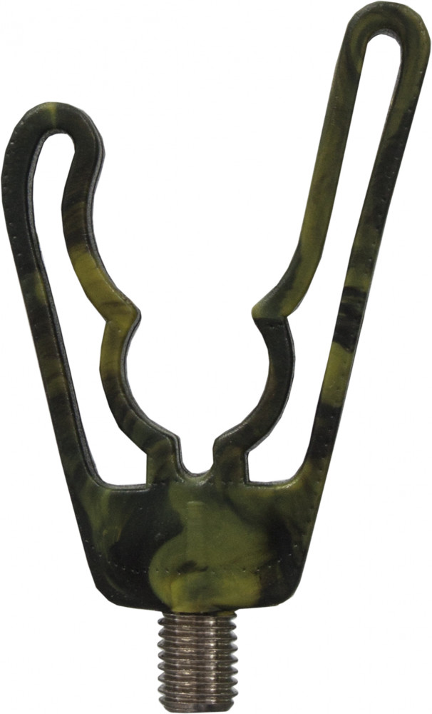 Der mit Tarnmuster versehene Rutenhalterkopf kann erfolgreich sowohl auf jedem Rod-Pod, Tripod oder traditionellen Stech-Rutenhalter, als auch beim Posen- und Grundangeln eingesetzt werden.