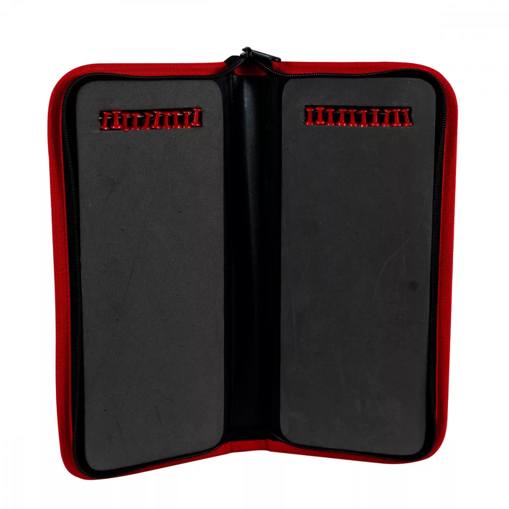 Carp Expert Vorfachtasche – Verstärkte Ausführung, Außenseite aus strapazierfähigem Material gefertigt, mit praktischem Reißverschluss. Im geöffneten Zustand können beide Seiten zur sicheren Aufbewahrung fertiger Vorfächer genutzt werden. Pro Seite werden 10-10 Pins mitgeliefert. Die Haken müssen nur in den dafür vorgesehenen Bereich eingehängt und dann die Endöse mit den Pins befestigt werden. Eine einfache und doch praktische Lösung.