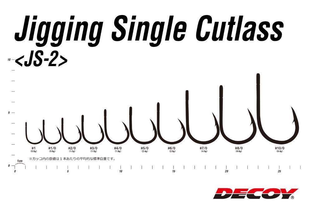 Der Name Decoy steht für japanische Präzision und jahrzehntelange Erfahrung im Bereich der Angelausrüstung. Das Modell JS-2 Jigging Single Cutlass N ist ein speziell geformter, extrem starker und widerstandsfähiger Haken, dessen Design selbst den wildesten Bissen standhält.