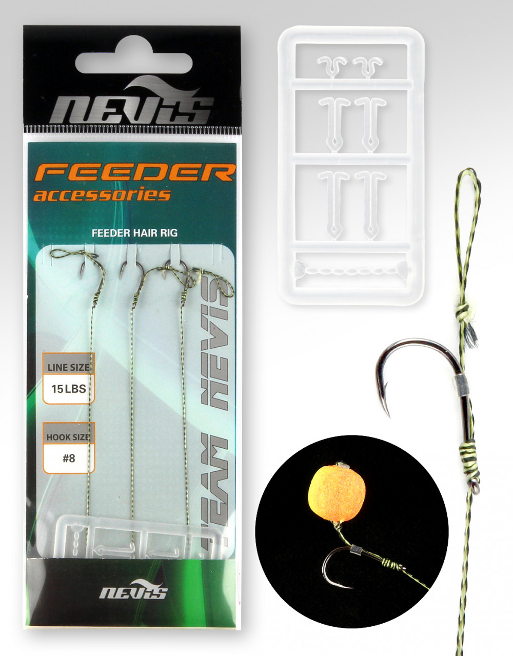 Nevis Feeder geflochtenes Vorfach Schwarz 6 3 Stk./Packung Mit Öhr Mit Widerhaken Monofil vorgebundener Haken