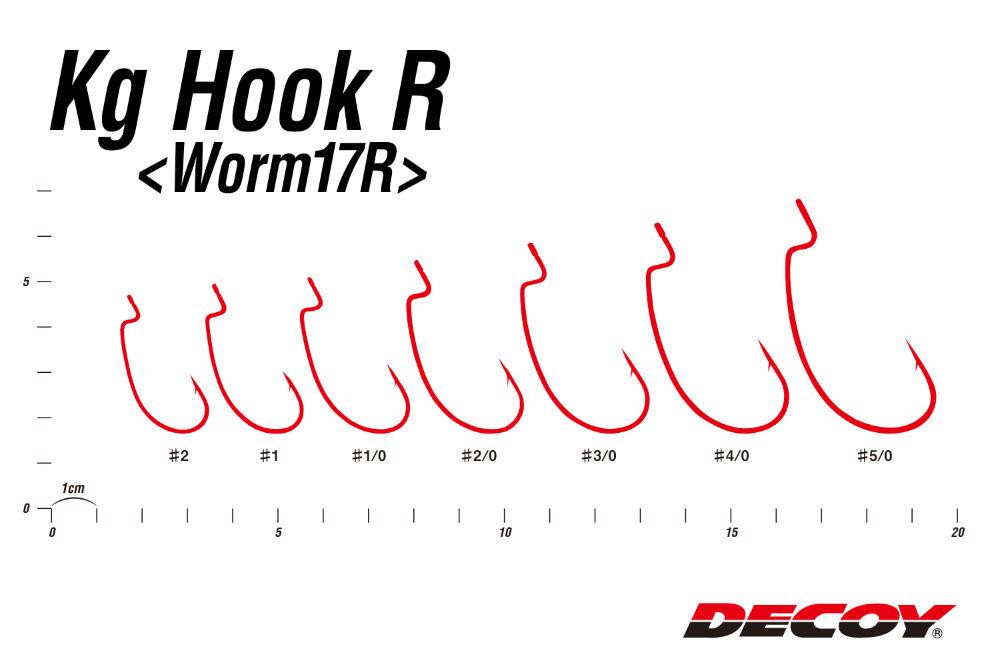 Der **Decoy Worm 17R KG** ist ein speziell für das Spinnfischen konzipierter Offset-Haken, dessen **Größe 5/0** ideal für größere Gummifische und Plastikköder ist.