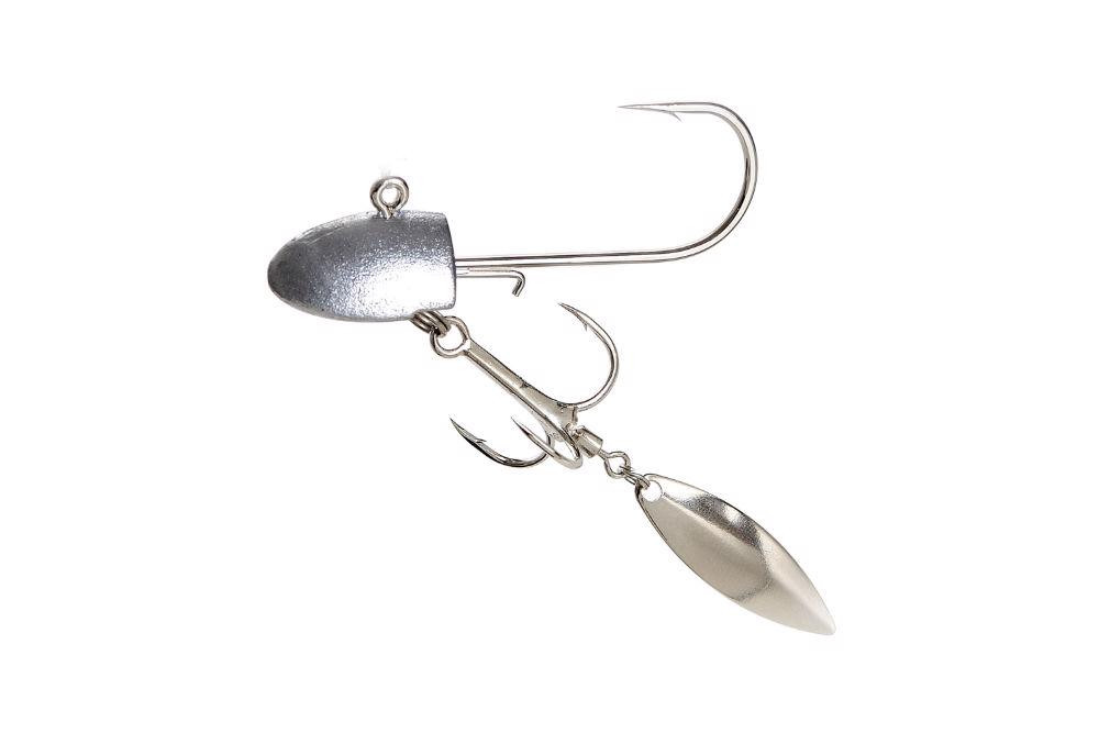 Dieser SV-34BT S.G. Head BT Jigkopf wurde speziell so konzipiert, dass sein eingebautes Spinnerblatt (spinner blade) das Aufblitzen und die Vibration des Köders verstärkt und so unwiderstehliche Impulse an Raubfische sendet, selbst in passiven Phasen.
